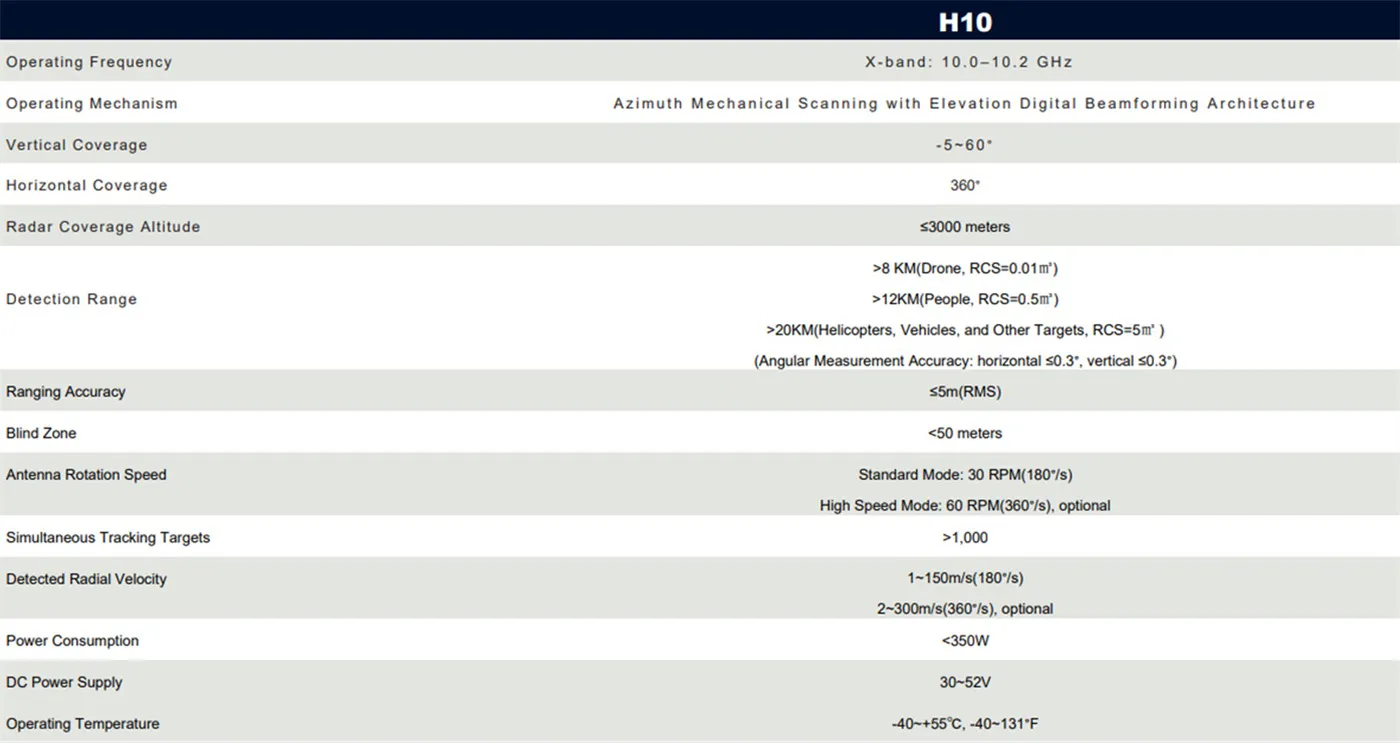 Operating Principle:Adopts azimuth mechanical scanning and pitch angle digital beamforming (DBF) technology