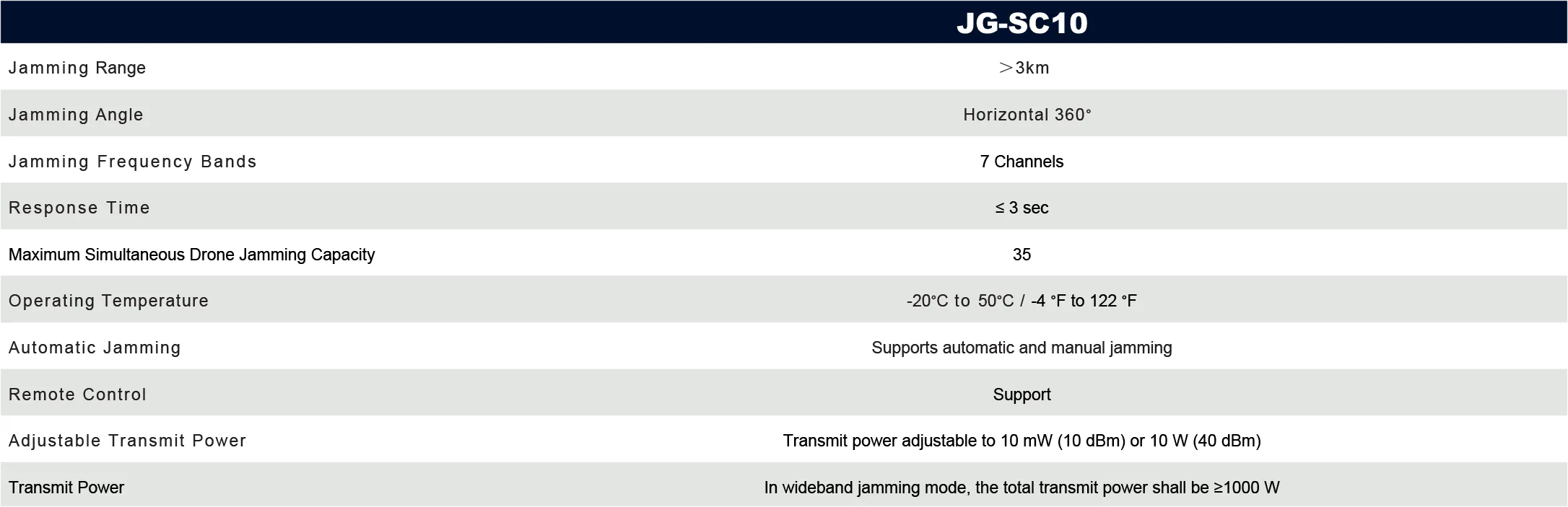 Controlled via RS422 for gimbal operation and LAN for remote control with linkage capability. The system supports automatic capture,tracking, and locking by the EO gimbal,and can simultaneously jam ≥35 UAV targets.