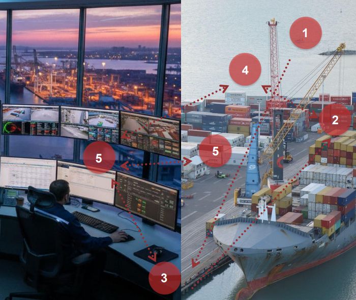 Major commercial ports are high-traffic areas that face numerous risks, including technological threats (such as harmful substance leaks, chemical pollution, fires, and explosions), natural disasters (storms, strong winds, tornadoes, and tsunamis), and terrorist activities. These risks make ports hazardous locations, underscoring the critical need for cutting-edge technology and reliable safety and security systems to safeguard both people and assets.